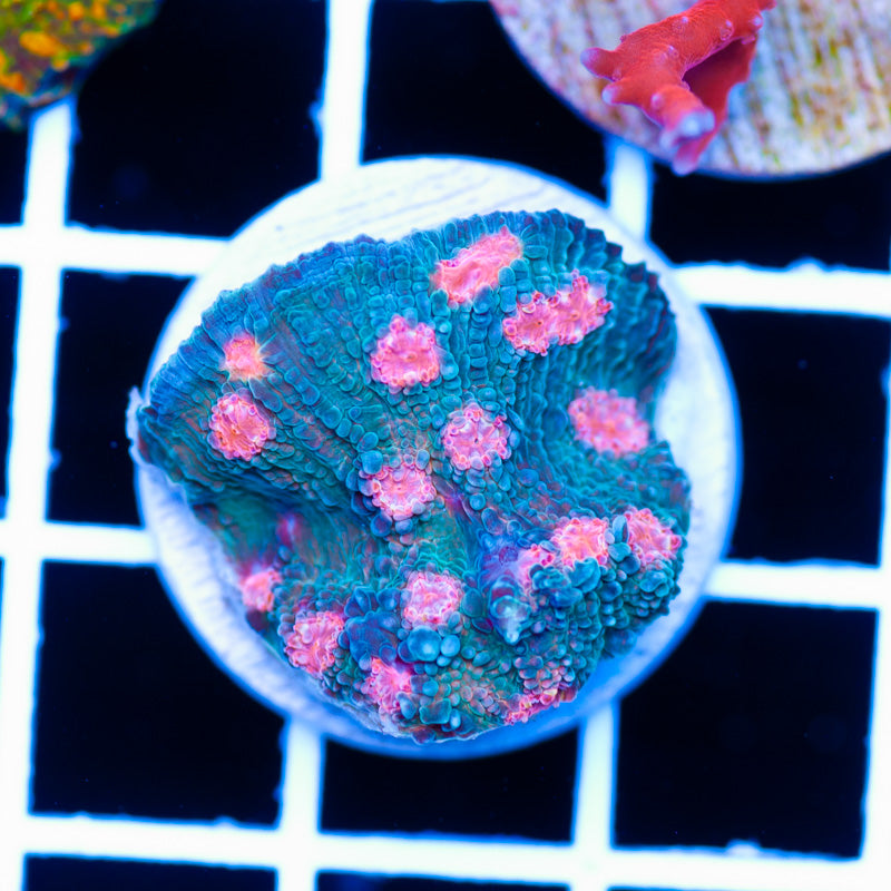 We keep our Chalice growing under Ecotech Radion LED’s, nutrition is provided by Polyplab Reef Roids and/or LRS frozen foods. Chalice thrive in nutrient rich environments with detectable PO4, NO3, and a DKH of 8(many corals will respond poorly to high DKH, please take that into consideration). It is our experience that most chalice do best in low light(less than 75 PAR). WYSIWYG