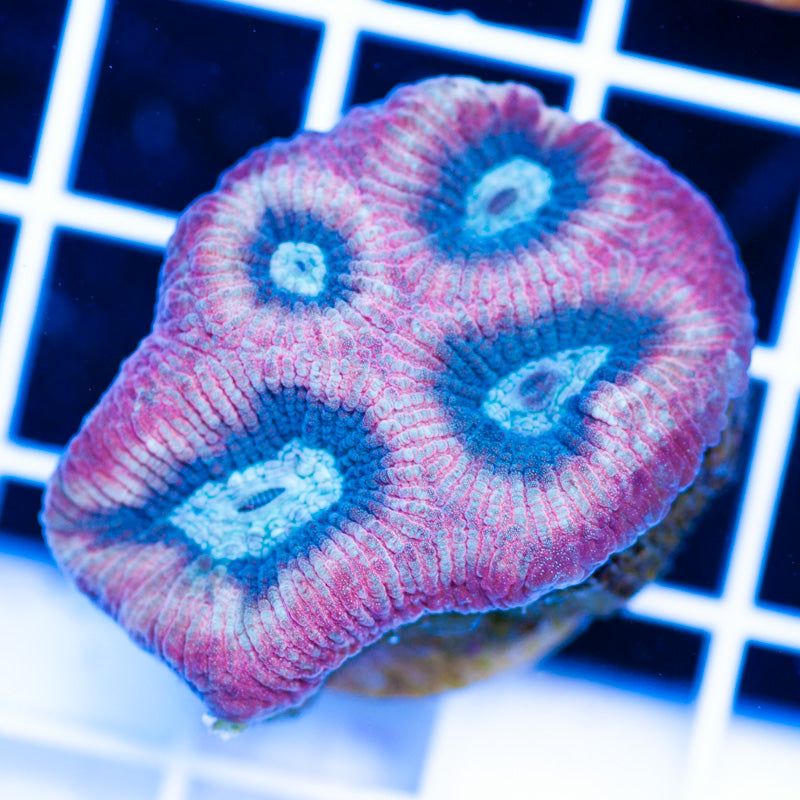 We keep our Favia/Favites growing under Ecotech Radion LED’s, nutrition is provided by Polyplab Reef Roids. Favia/Favites thrive in nutrient rich environments with detectable PO4, NO3, and a DKH of 8(many corals will respond poorly to high DKH, please take that into consideration). It is our experience that most favia/favites do best in low light(less than 75 PAR). WYSIWYG