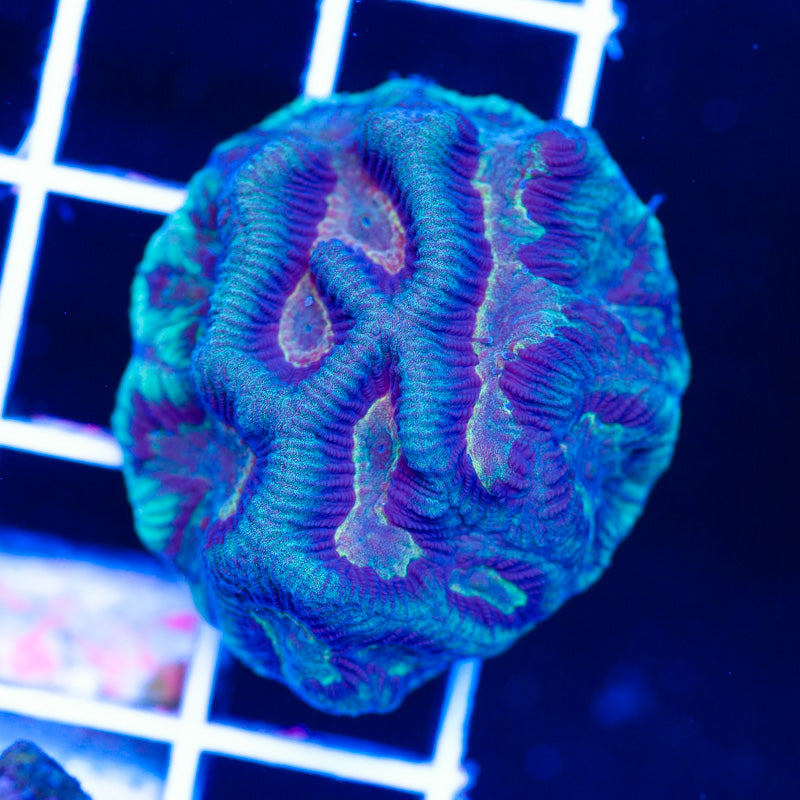 We keep our Favia/Favites growing under Ecotech Radion LED’s, nutrition is provided by Polyplab Reef Roids. Favia/Favites thrive in nutrient rich environments with detectable PO4, NO3, and a DKH of 8(many corals will respond poorly to high DKH, please take that into consideration). It is our experience that most favia/favites do best in low light(less than 75 PAR). WYSIWYG