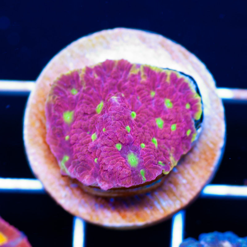 We keep our Favia/Favites growing under Ecotech Radion LED’s, nutrition is provided by Polyplab Reef Roids. Favia/Favites thrive in nutrient rich environments with detectable PO4, NO3, and a DKH of 8(many corals will respond poorly to high DKH, please take that into consideration). It is our experience that most favia/favites do best in low light(less than 75 PAR). WYSIWYG