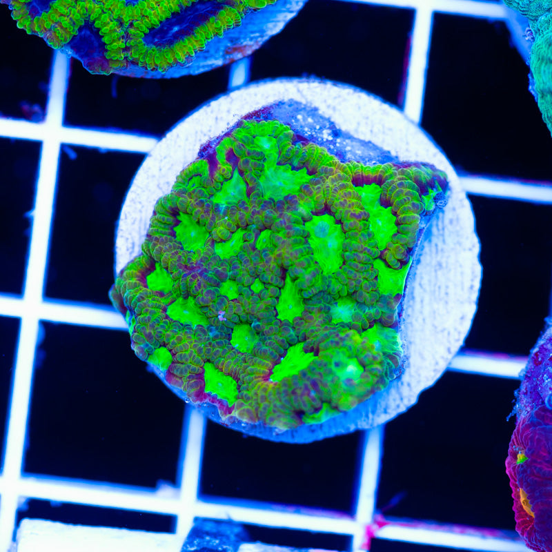 We keep our Favia/Favites growing under Ecotech Radion LED’s, nutrition is provided by Polyplab Reef Roids. Favia/Favites thrive in nutrient rich environments with detectable PO4, NO3, and a DKH of 8(many corals will respond poorly to high DKH, please take that into consideration). It is our experience that most favia/favites do best in low light(less than 75 PAR). WYSIWYG