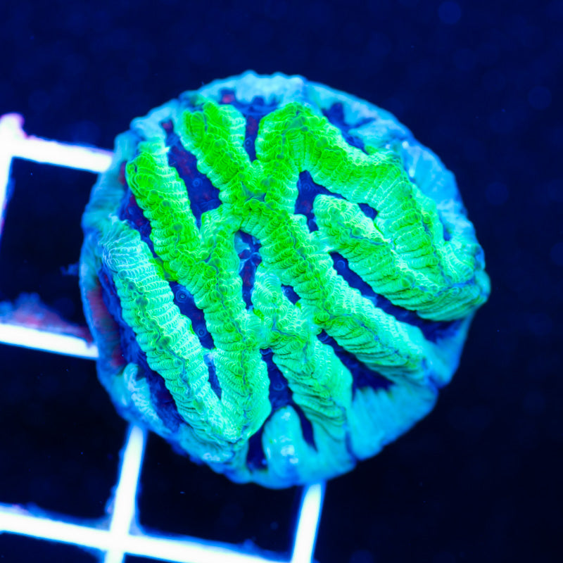 We keep our Favia/Favites growing under Ecotech Radion LED’s, nutrition is provided by Polyplab Reef Roids. Favia/Favites thrive in nutrient rich environments with detectable PO4, NO3, and a DKH of 8(many corals will respond poorly to high DKH, please take that into consideration). It is our experience that most favia/favites do best in low light(less than 75 PAR). WYSIWYG