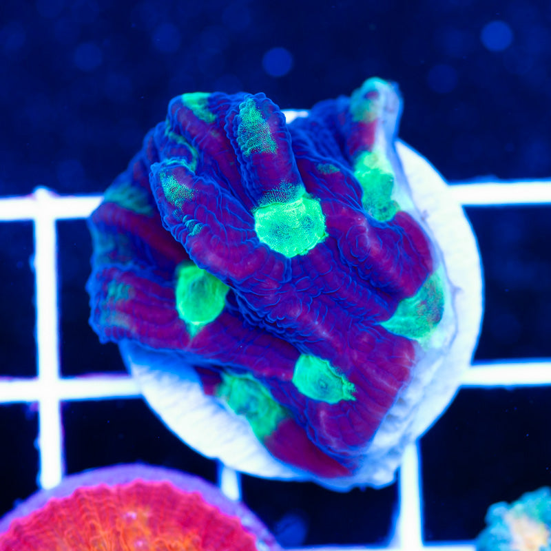 We keep our Chalice growing under Ecotech Radion LED’s, nutrition is provided by Polyplab Reef Roids and/or LRS frozen foods. Chalice thrive in nutrient rich environments with detectable PO4, NO3, and a DKH of 8(many corals will respond poorly to high DKH, please take that into consideration). It is our experience that most chalice do best in low light(less than 75 PAR). WYSIWYG