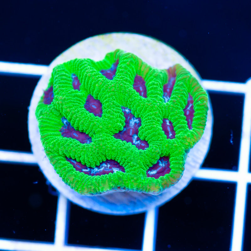 We keep our Favia/Favites growing under Ecotech Radion LED’s, nutrition is provided by Polyplab Reef Roids. Favia/Favites thrive in nutrient rich environments with detectable PO4, NO3, and a DKH of 8(many corals will respond poorly to high DKH, please take that into consideration). It is our experience that most favia/favites do best in low light(less than 75 PAR). WYSIWYG