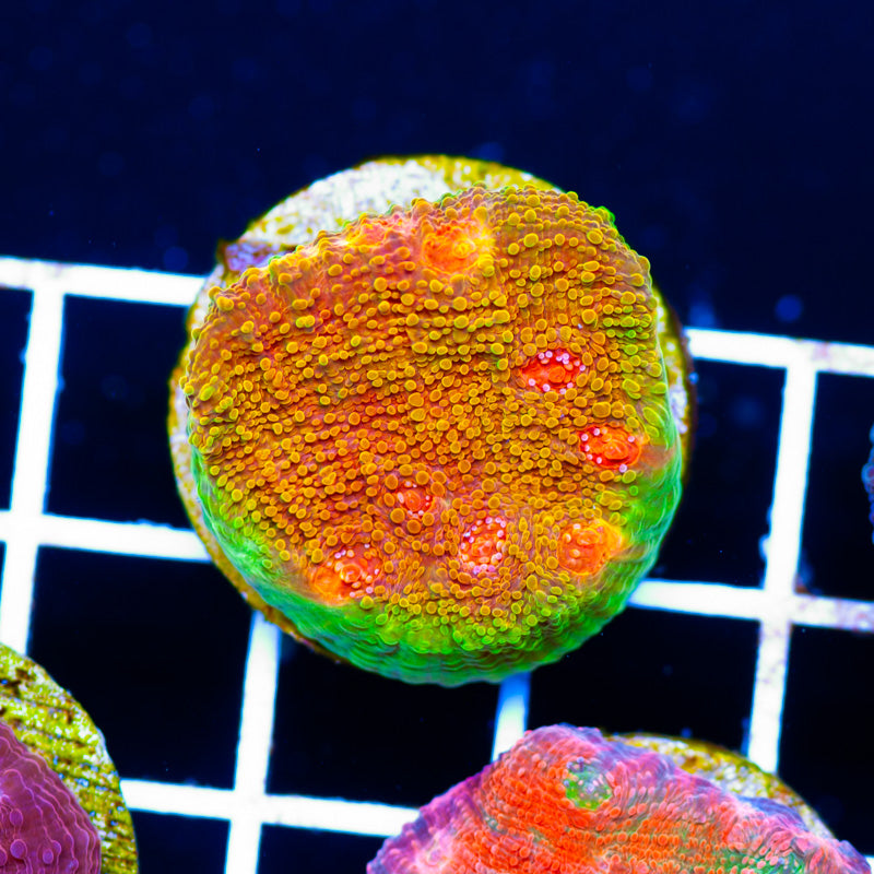 We keep our Chalice growing under Ecotech Radion LED’s, nutrition is provided by Polyplab Reef Roids and/or LRS frozen foods. Chalice thrive in nutrient rich environments with detectable PO4, NO3, and a DKH of 8(many corals will respond poorly to high DKH, please take that into consideration). It is our experience that most chalice do best in low light(less than 75 PAR). WYSIWYG