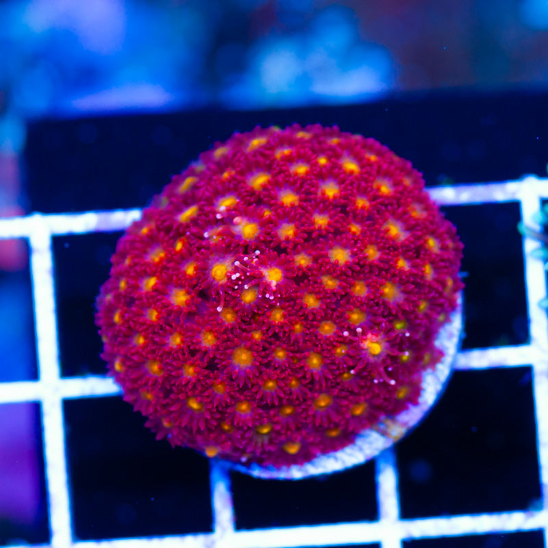 We keep our Goniopora/Alveopora growing under ATI Blue Plus and Reef Brite blue LED’s, nutrition is provided by Polyplab Reef Roids. Goniopora/Alveopora thrive in nutrient rich environments with detectable PO4, NO3, and a DKH of 8(many corals will respond poorly to high DKH, please take that into consideration). WYSIWYG
