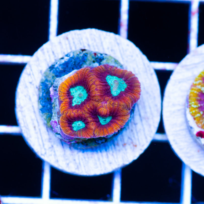 We keep our Favia/Favites growing under Ecotech Radion LED’s, nutrition is provided by Polyplab Reef Roids. Favia/Favites thrive in nutrient rich environments with detectable PO4, NO3, and a DKH of 8(many corals will respond poorly to high DKH, please take that into consideration). It is our experience that most favia/favites do best in low light(less than 75 PAR). WYSIWYG