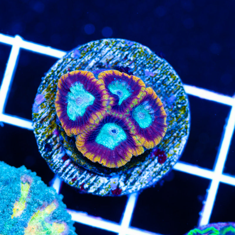 We keep our Favia/Favites growing under Ecotech Radion LED’s, nutrition is provided by Polyplab Reef Roids. Favia/Favites thrive in nutrient rich environments with detectable PO4, NO3, and a DKH of 8(many corals will respond poorly to high DKH, please take that into consideration). It is our experience that most favia/favites do best in low light(less than 75 PAR). WYSIWYG