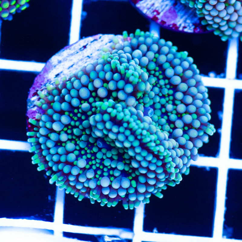 We keep our Ricordea growing under ATI Blue Plus and Reef Brite blue LED’s, nutrition is provided by Polyplab Reef Roids. Ricordea thrive in nutrient rich environments with detectable PO4, NO3, and a DKH of 8(many corals will respond poorly to high DKH, please take that into consideration). WYSIWYG