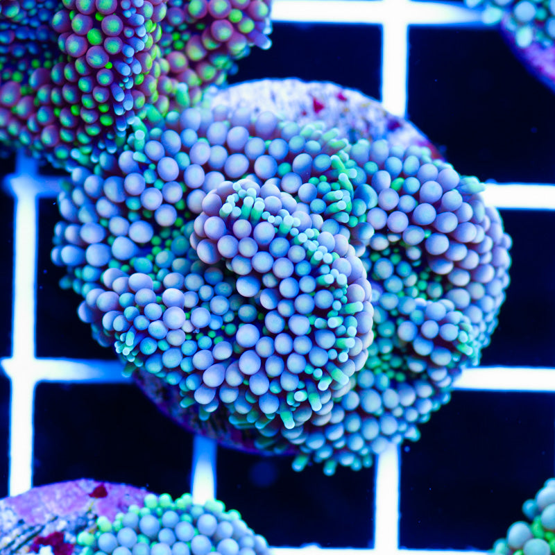 We keep our Ricordea growing under ATI Blue Plus and Reef Brite blue LED’s, nutrition is provided by Polyplab Reef Roids. Ricordea thrive in nutrient rich environments with detectable PO4, NO3, and a DKH of 8(many corals will respond poorly to high DKH, please take that into consideration). WYSIWYG