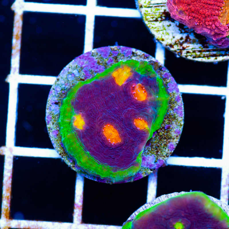 We keep our Chalice growing under Ecotech Radion LED’s, nutrition is provided by Polyplab Reef Roids and/or LRS frozen foods. Chalice thrive in nutrient rich environments with detectable PO4, NO3, and a DKH of 8(many corals will respond poorly to high DKH, please take that into consideration). It is our experience that most chalice do best in low light(less than 75 PAR). WYSIWYG