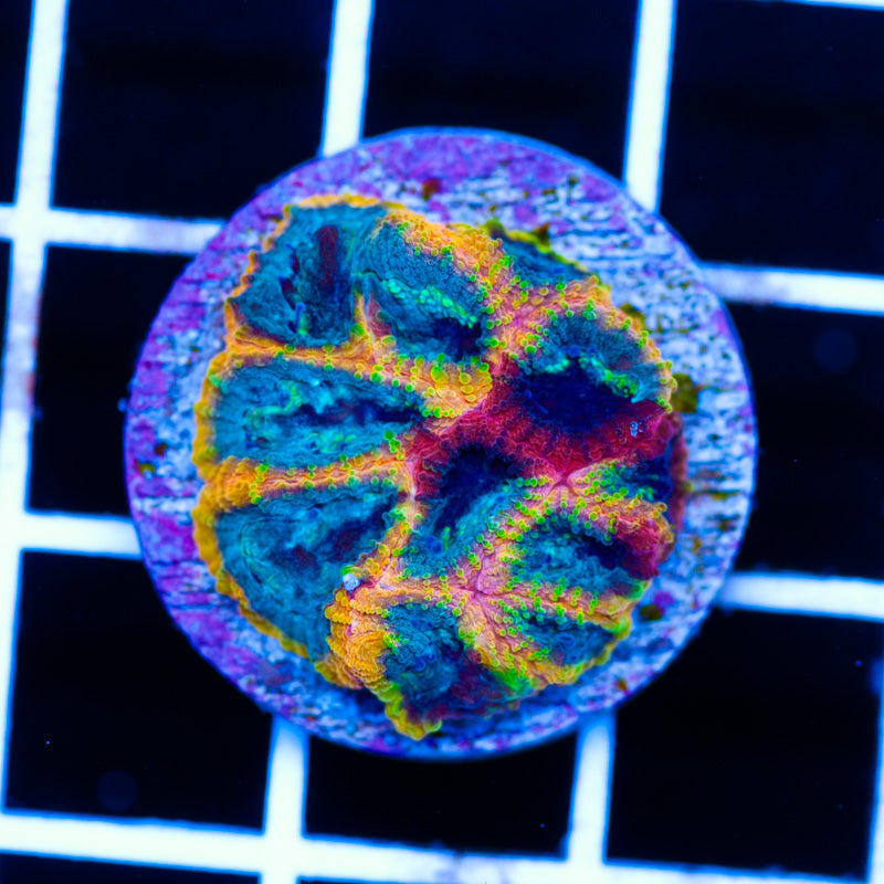 We keep our Favia/Favites growing under Ecotech Radion LED’s, nutrition is provided by Polyplab Reef Roids. Favia/Favites thrive in nutrient rich environments with detectable PO4, NO3, and a DKH of 8(many corals will respond poorly to high DKH, please take that into consideration). It is our experience that most favia/favites do best in low light(less than 75 PAR). WYSIWYG