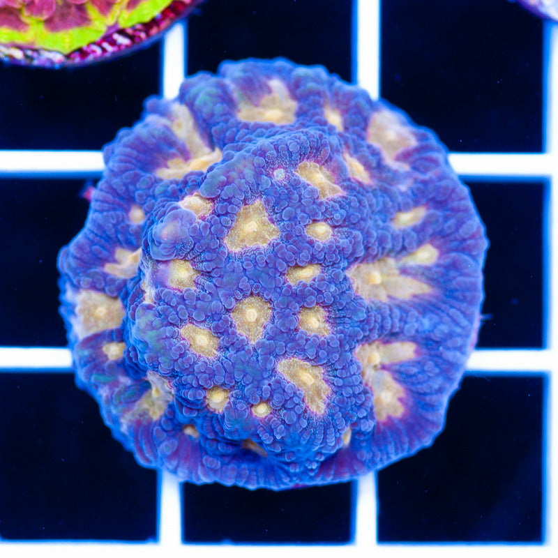 We keep our Favia/Favites growing under Ecotech Radion LED’s, nutrition is provided by Polyplab Reef Roids. Favia/Favites thrive in nutrient rich environments with detectable PO4, NO3, and a DKH of 8(many corals will respond poorly to high DKH, please take that into consideration). It is our experience that most favia/favites do best in low light(less than 75 PAR). WYSIWYG