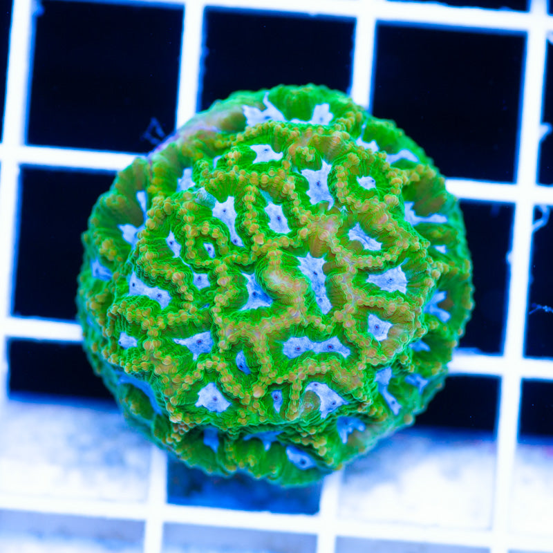 We keep our Favia/Favites growing under Ecotech Radion LED’s, nutrition is provided by Polyplab Reef Roids. Favia/Favites thrive in nutrient rich environments with detectable PO4, NO3, and a DKH of 8(many corals will respond poorly to high DKH, please take that into consideration). It is our experience that most favia/favites do best in low light(less than 75 PAR). WYSIWYG