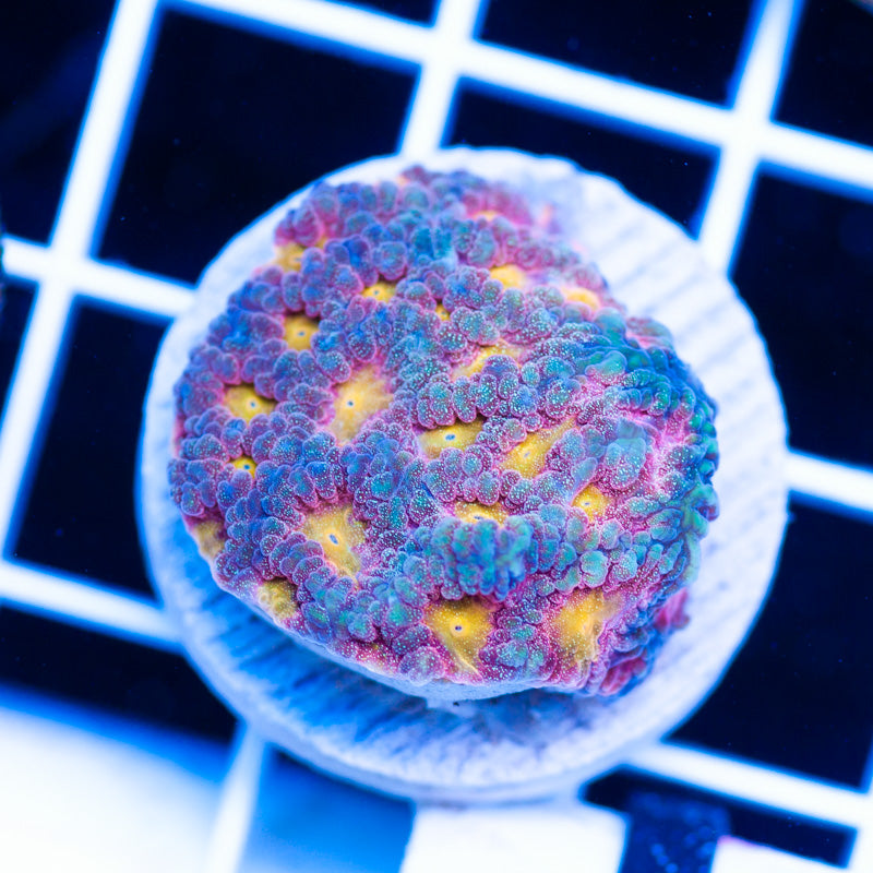We keep our Favia/Favites growing under Ecotech Radion LED’s, nutrition is provided by Polyplab Reef Roids. Favia/Favites thrive in nutrient rich environments with detectable PO4, NO3, and a DKH of 8(many corals will respond poorly to high DKH, please take that into consideration). It is our experience that most favia/favites do best in low light(less than 75 PAR). WYSIWYG