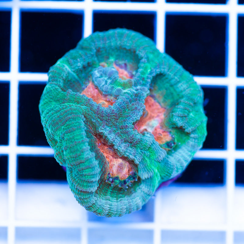 We keep our Favia/Favites growing under Ecotech Radion LED’s, nutrition is provided by Polyplab Reef Roids. Favia/Favites thrive in nutrient rich environments with detectable PO4, NO3, and a DKH of 8(many corals will respond poorly to high DKH, please take that into consideration). It is our experience that most favia/favites do best in low light(less than 75 PAR). WYSIWYG