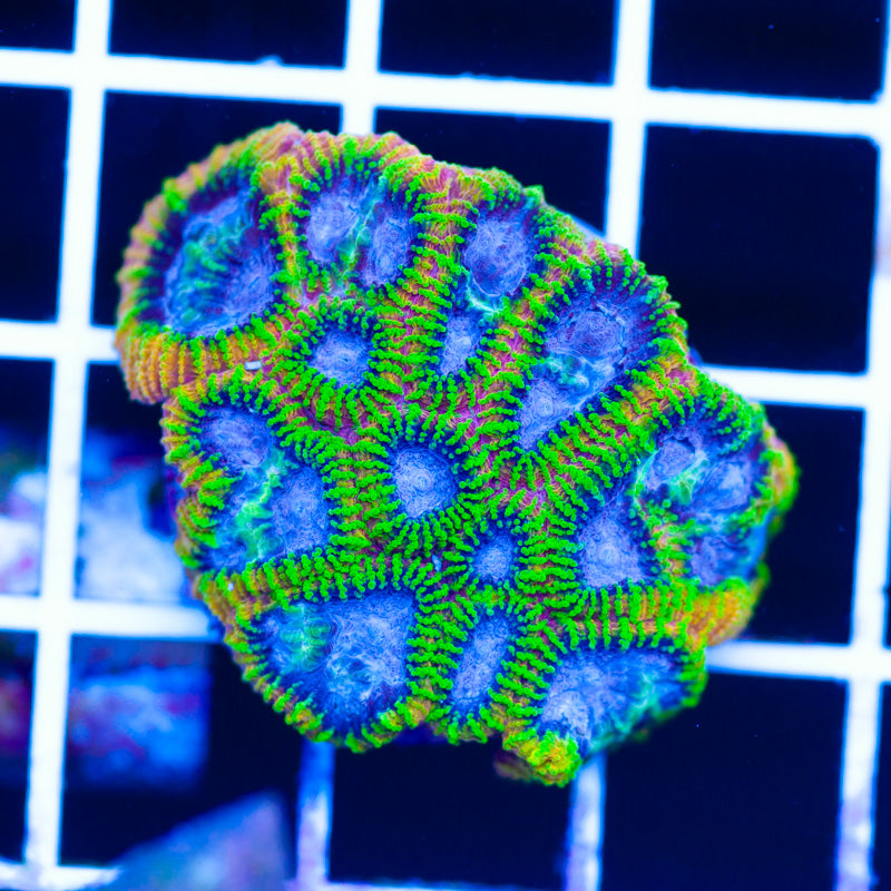 We keep our Favia/Favites growing under Ecotech Radion LED’s, nutrition is provided by Polyplab Reef Roids. Favia/Favites thrive in nutrient rich environments with detectable PO4, NO3, and a DKH of 8(many corals will respond poorly to high DKH, please take that into consideration). It is our experience that most favia/favites do best in low light(less than 75 PAR). WYSIWYG