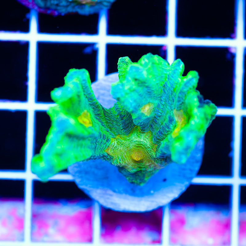 We keep our Chalice growing under Ecotech Radion LED’s, nutrition is provided by Polyplab Reef Roids and/or LRS frozen foods. Chalice thrive in nutrient rich environments with detectable PO4, NO3, and a DKH of 8(many corals will respond poorly to high DKH, please take that into consideration). It is our experience that most chalice do best in low light(less than 75 PAR). WYSIWYG
