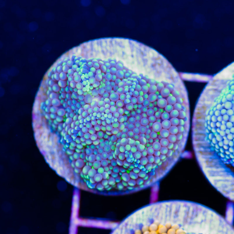 We keep/grow our mushrooms under ATI Blue Plus and Reef Brite blue LED’s, nutrition is provided by Polyplab Reef Roids(although we seldom direct feed) We achieve the best color and polyp size by providing a system with detectable PO4, NO3, and a DKH of 8(many polyps will respond poorly to high DKH, please take that into consideration). low/moderate intermittent flow is very important to the health of our polyps. WYSIWYG