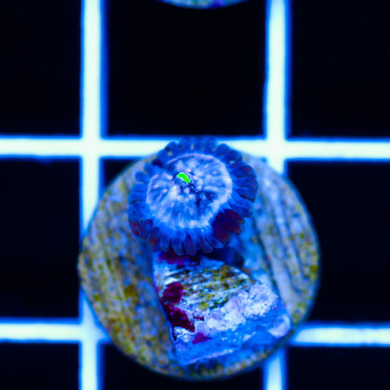 We grow our Zoanthids under ATI Blue Plus, Reef Brite blue LED’s. Nutrition is provided by Polyplab Reef Roids. We achieve the best color and polyp size by providing a system with detectable PO4, NO3, and a DKH of 8(many polyps will respond poorly to high DKH, please take that into consideration). Strong/moderate intermittent flow is very important to the health of our polyps. WYSIWYG