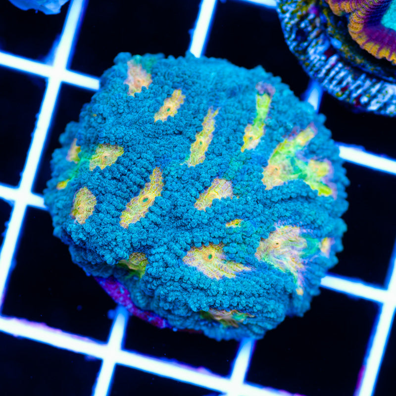 We keep our Favia/Favites growing under Ecotech Radion LED’s, nutrition is provided by Polyplab Reef Roids. Favia/Favites thrive in nutrient rich environments with detectable PO4, NO3, and a DKH of 8(many corals will respond poorly to high DKH, please take that into consideration). It is our experience that most favia/favites do best in low light(less than 75 PAR). WYSIWYG