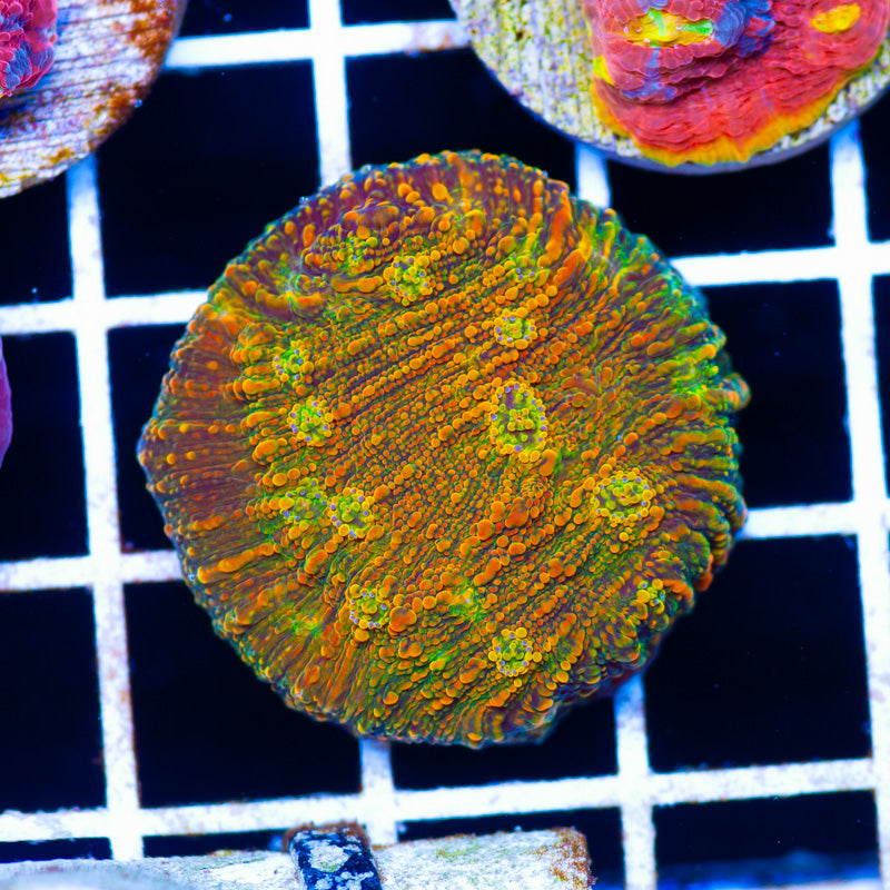 We keep our Chalice growing under Ecotech Radion LED’s, nutrition is provided by Polyplab Reef Roids and/or LRS frozen foods. Chalice thrive in nutrient rich environments with detectable PO4, NO3, and a DKH of 8(many corals will respond poorly to high DKH, please take that into consideration). It is our experience that most chalice do best in low light(less than 75 PAR). WYSIWYG