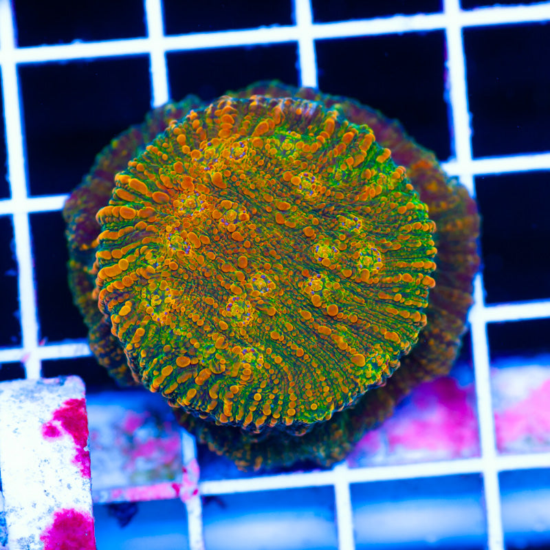 We keep our Chalice growing under Ecotech Radion LED’s, nutrition is provided by Polyplab Reef Roids and/or LRS frozen foods. Chalice thrive in nutrient rich environments with detectable PO4, NO3, and a DKH of 8(many corals will respond poorly to high DKH, please take that into consideration). It is our experience that most chalice do best in low light(less than 75 PAR). WYSIWYG